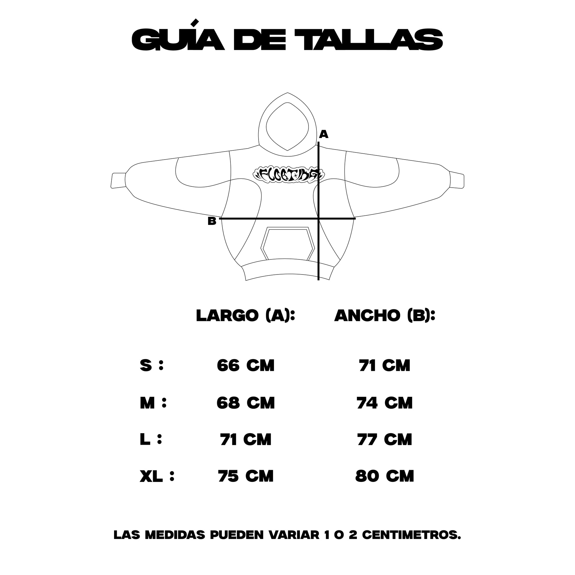 XL: 75 de largo x 80 de ancho Manga 63 cm